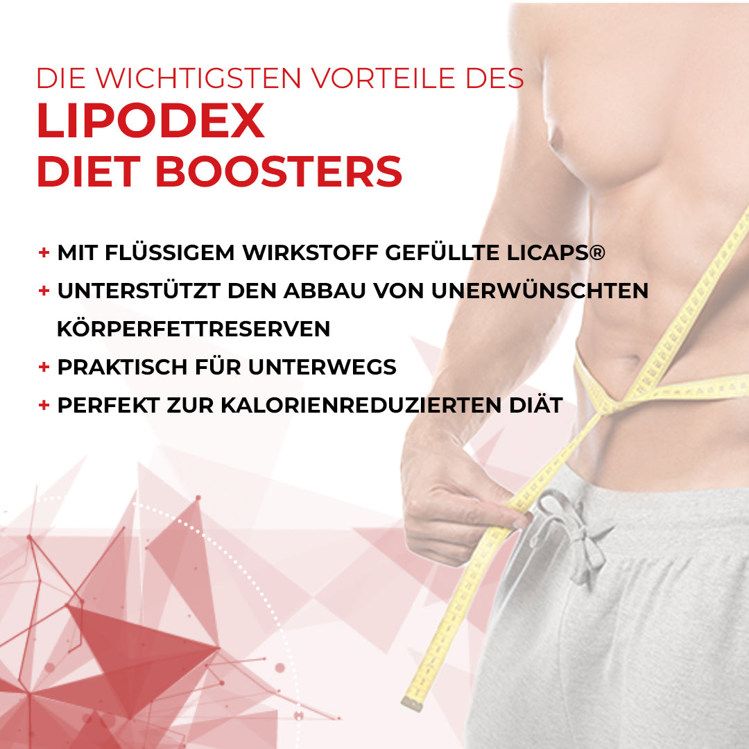 - Die LIPODEX Kapseln werden vorwiegend in Diät von Fitness Athleten, Abnehmwilligen oder Bodybuildern eingenommen, um hartnäckige Fettdepots so weit wie möglich abzubauen.