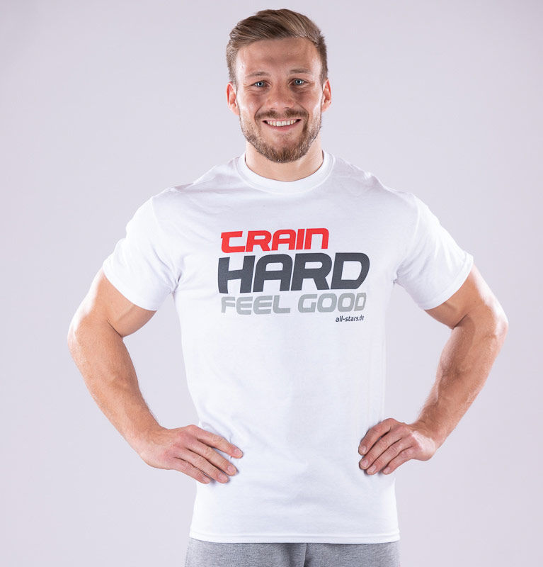 Unser neues T-Shirt "ALL STARS - TRAIN HARD FEEL GOOD" ist der ideale Begleiter für Sport und Freizeit.