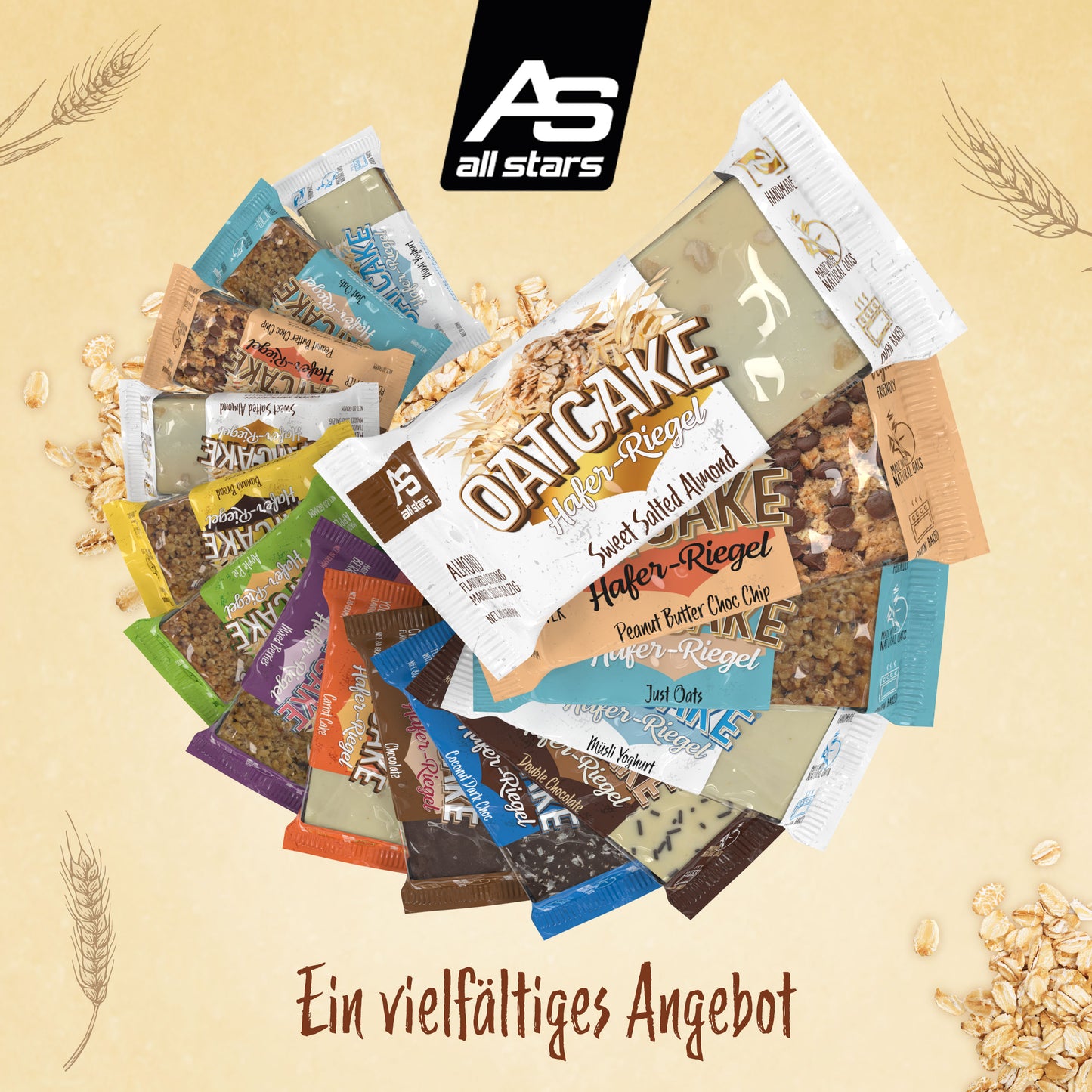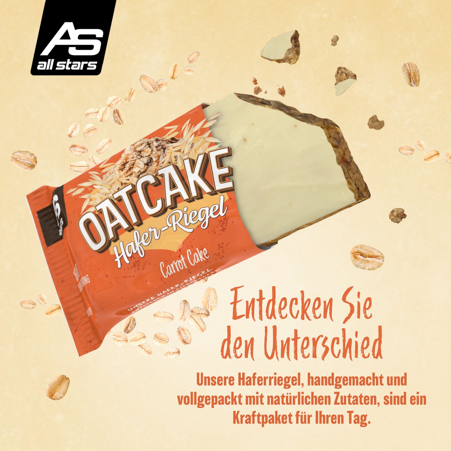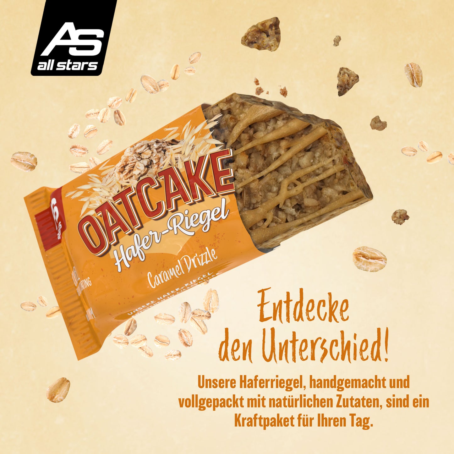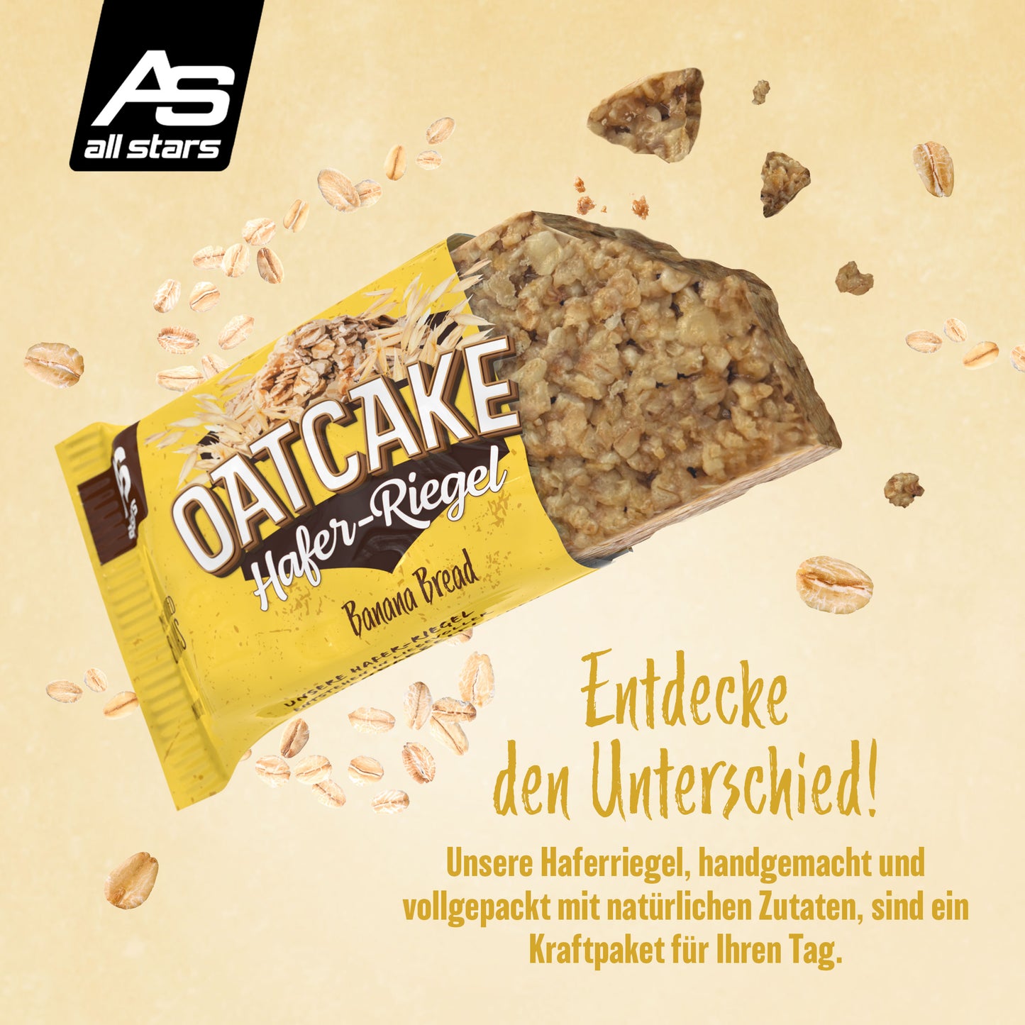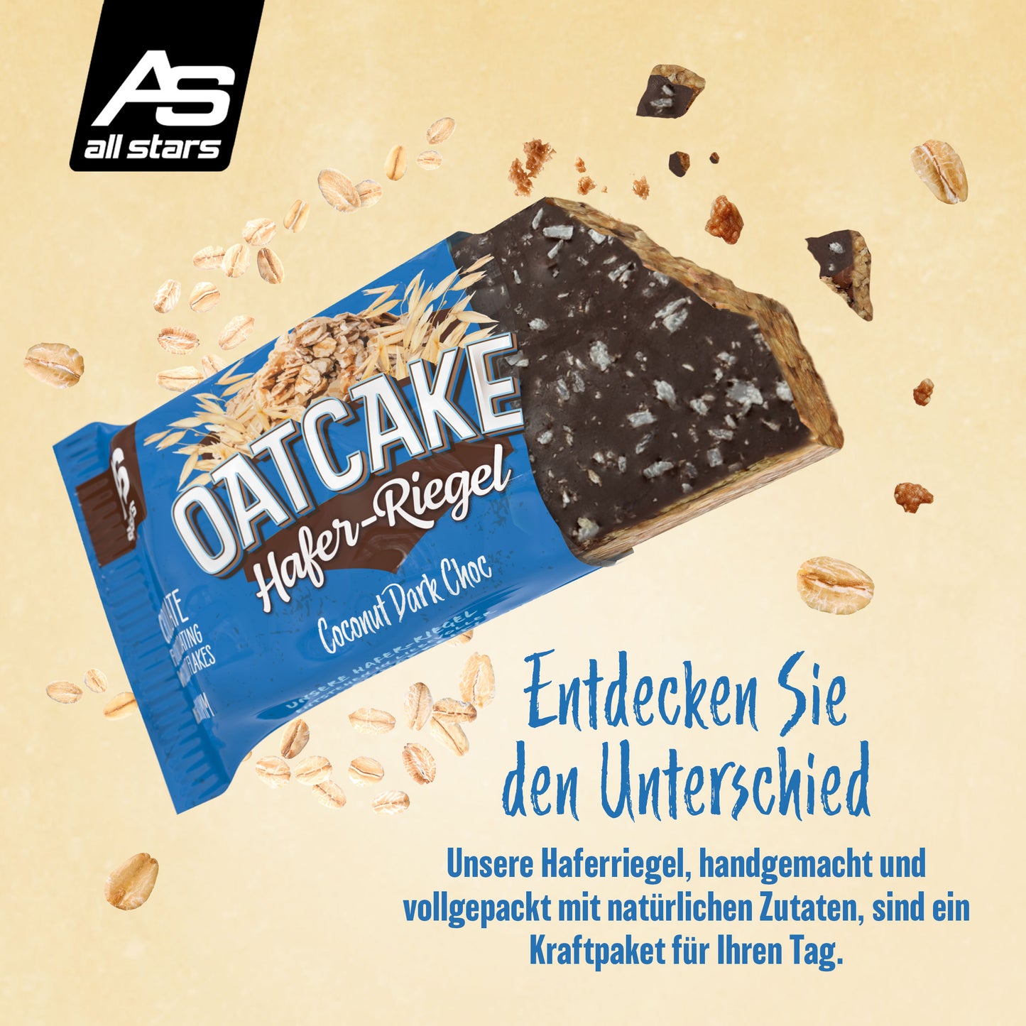 Der neue 80g Hafer-Riegel von ALL STARS ist der ideale Mahlzeitenersatz vor dem Training oder unterwegs, wenn keine Zeit für eine richtige Mahlzeit bleibt. Der OATCAKE Bar wird in liebervoller Handarbeit hergestellt und ist im Ofen gebacken.