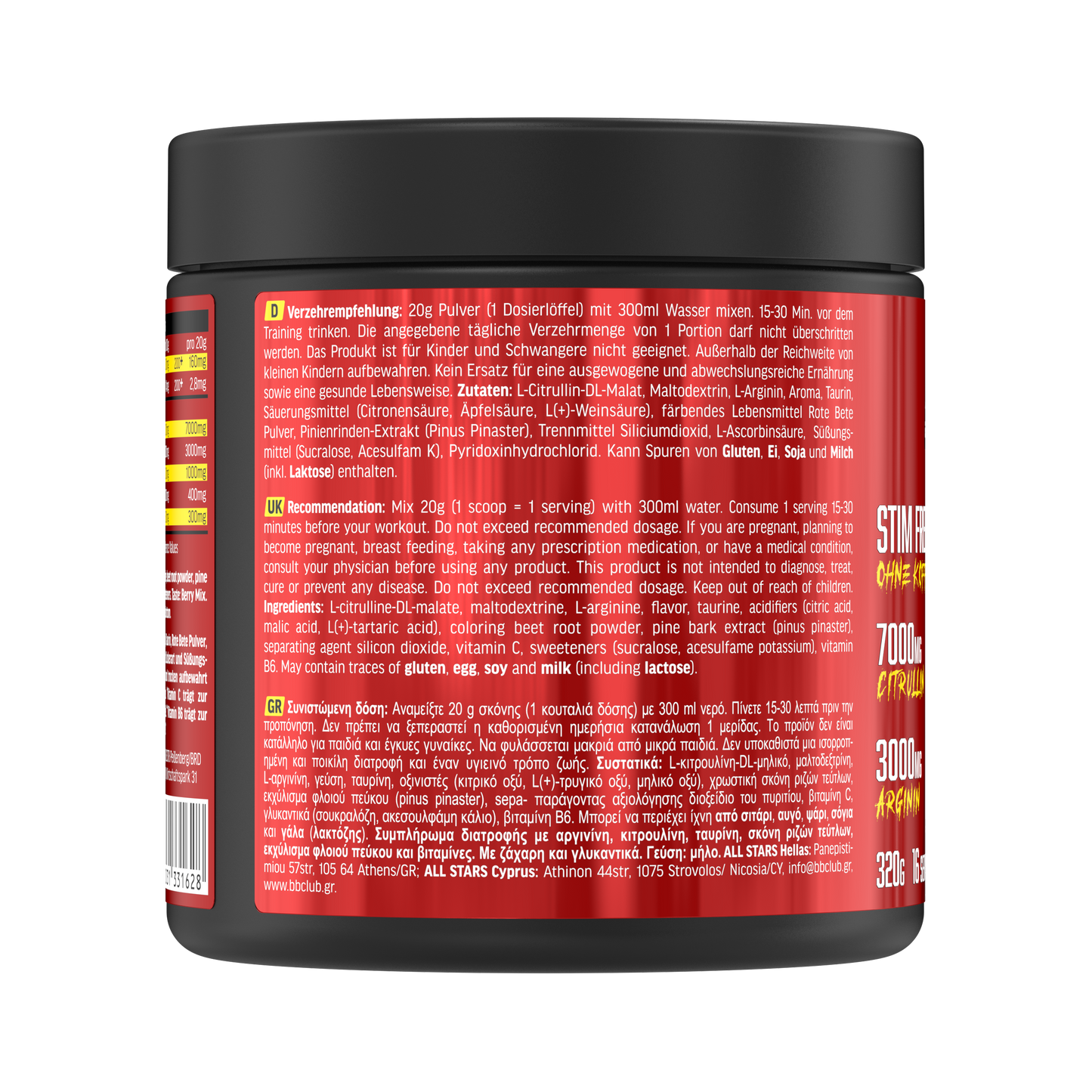 ALL STARS Pre Workout Pump Booster 320g – Mit Arginin und Citrullin Stim freier Booster