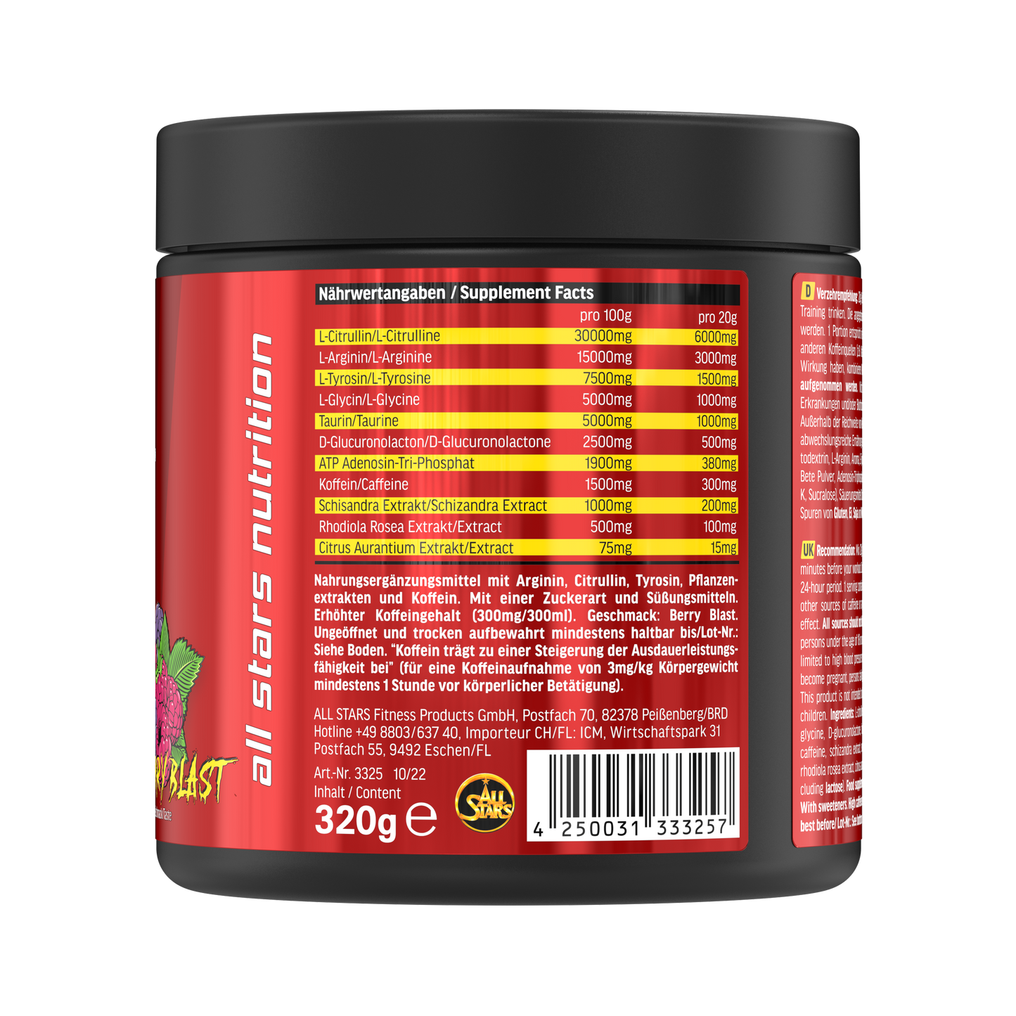 Regulärer Preis €37,59- Pre-Workout Booster mit 11 Wirkstoffen