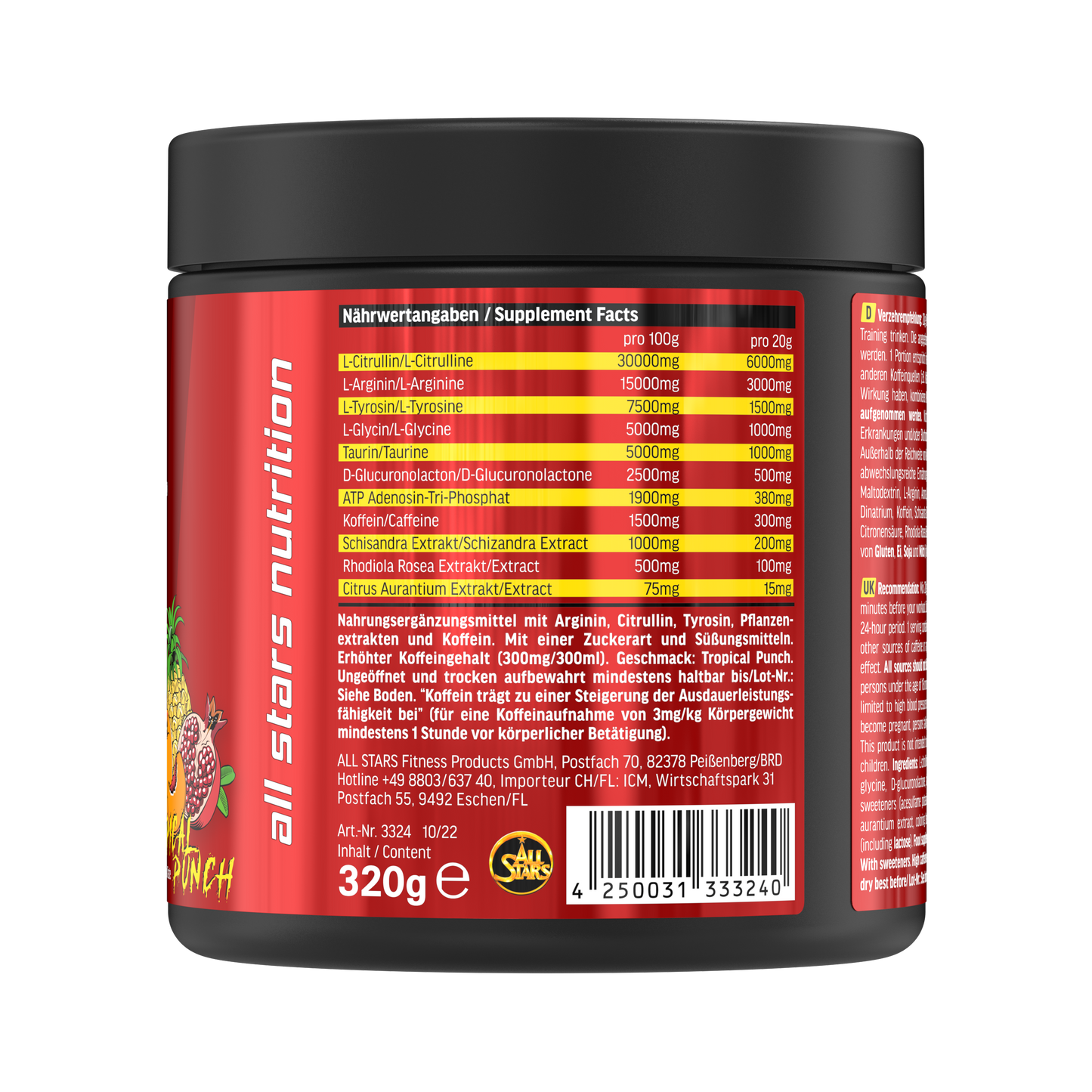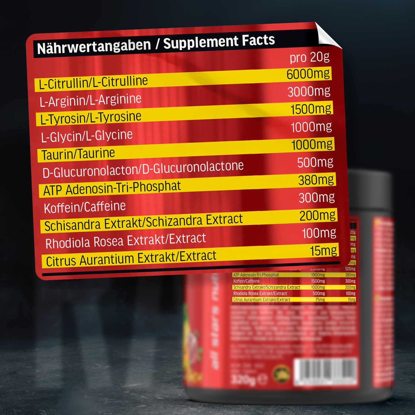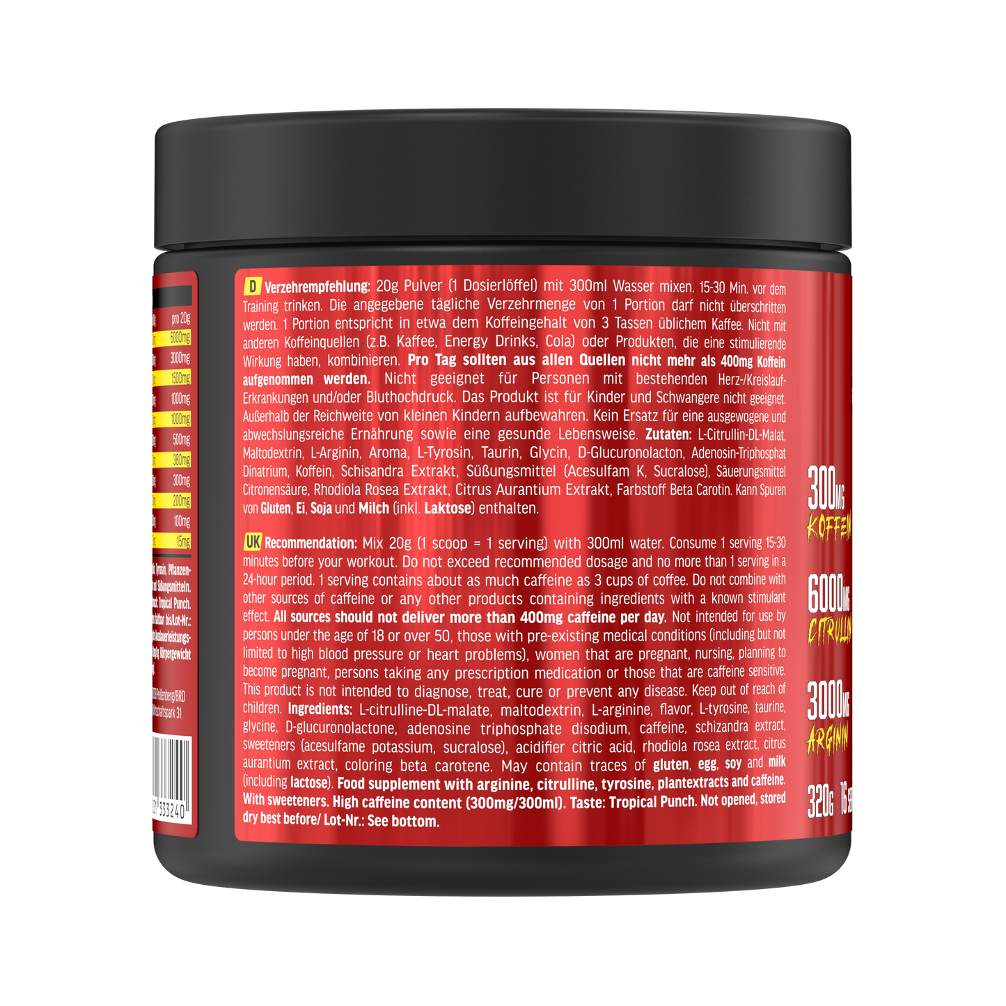 - Mit Citrullin, Arginin, Taurin & Koffein
