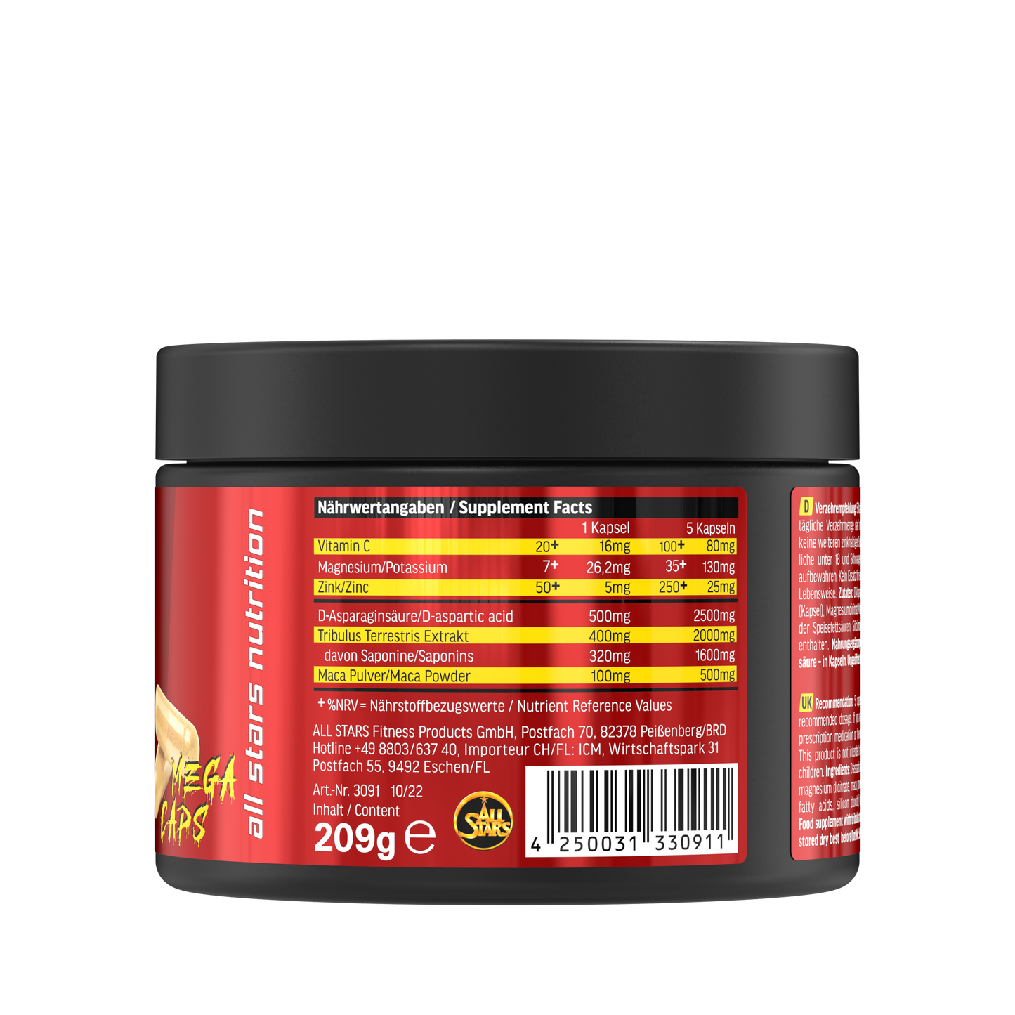 Eine Kombination aus Vitamin C, Magnesium und Zink, D-Asparaginsäure, Tribulus Terrestris Extrakt (davon 80% Saponin) und Maca Pulver in Kapselform. Der ideale Boost für die nächste Trainingseinheit zum Muskel- und Kraftaufbau!
