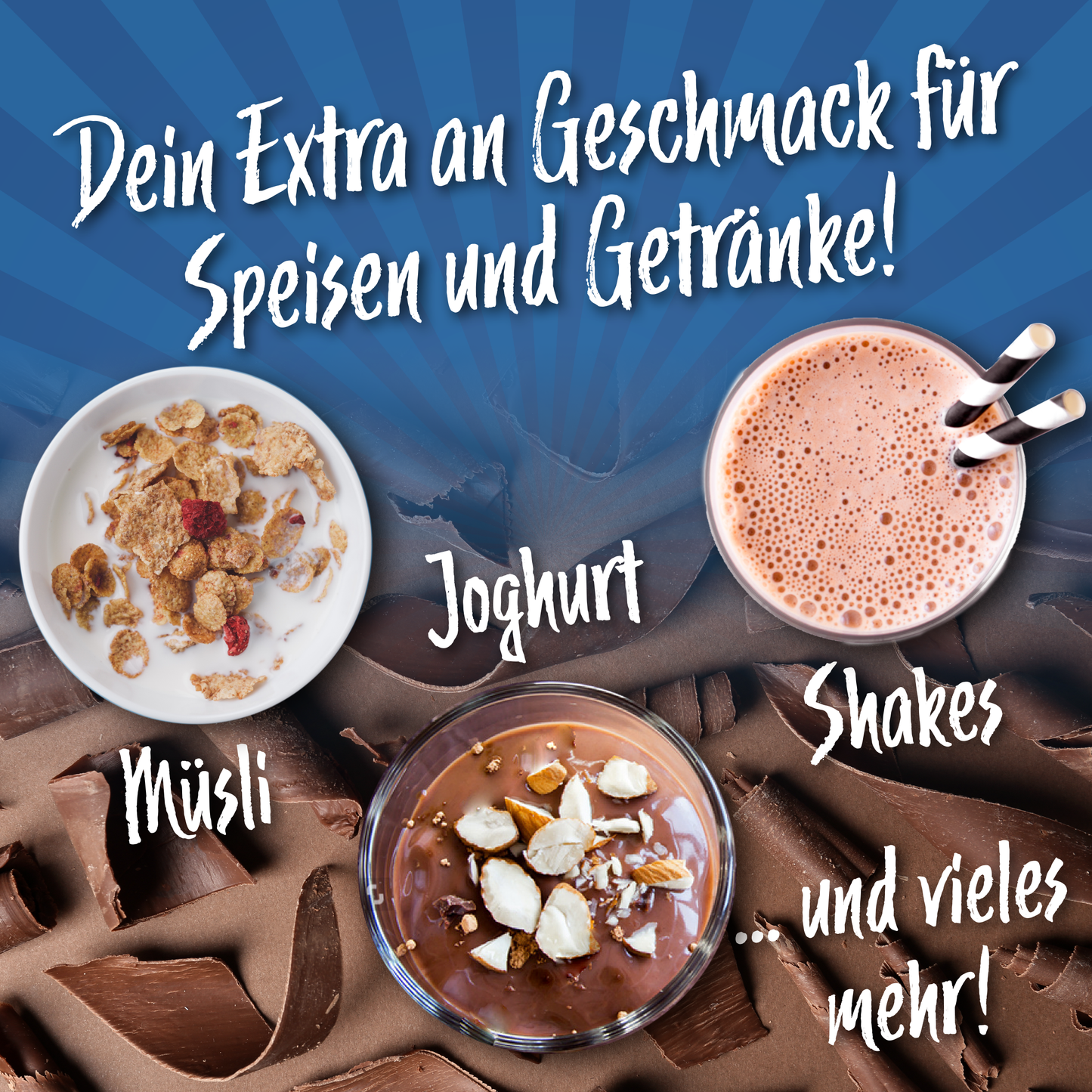 Der kalorienarme Zusatz zu Quark, Joghurt, dem Whey Protein Shake rund ums Training oder einem leckeren Smoothie. Drei leckere Geschmacksvarianten sorgen für Abwechslung: White Chocolate & Chunks, Milky Chocolate & Chunks und White Chocolate Strawberry.