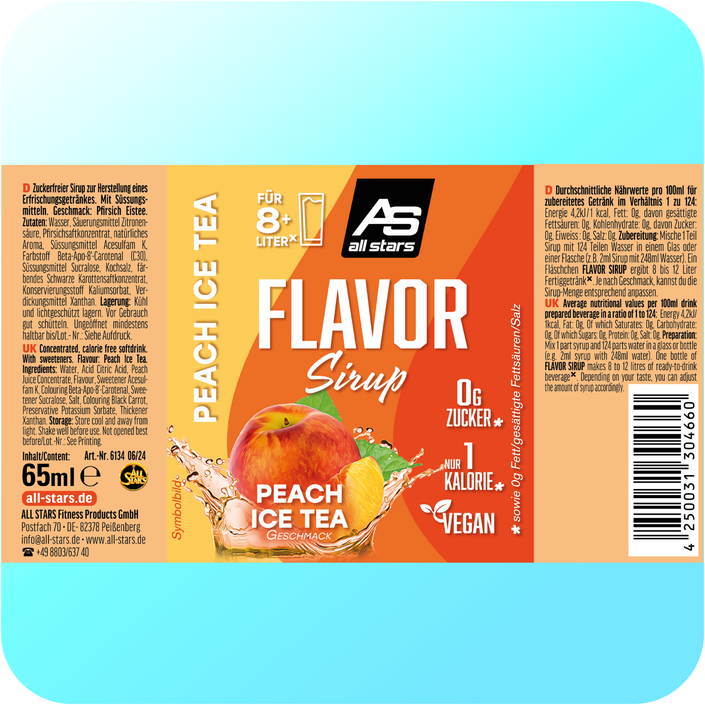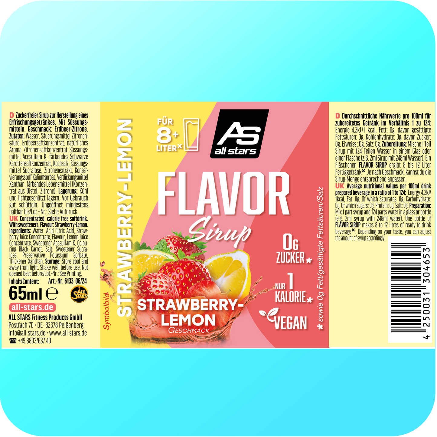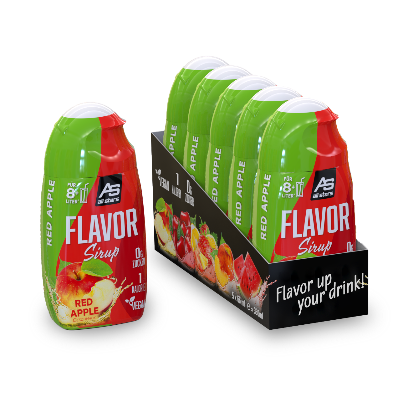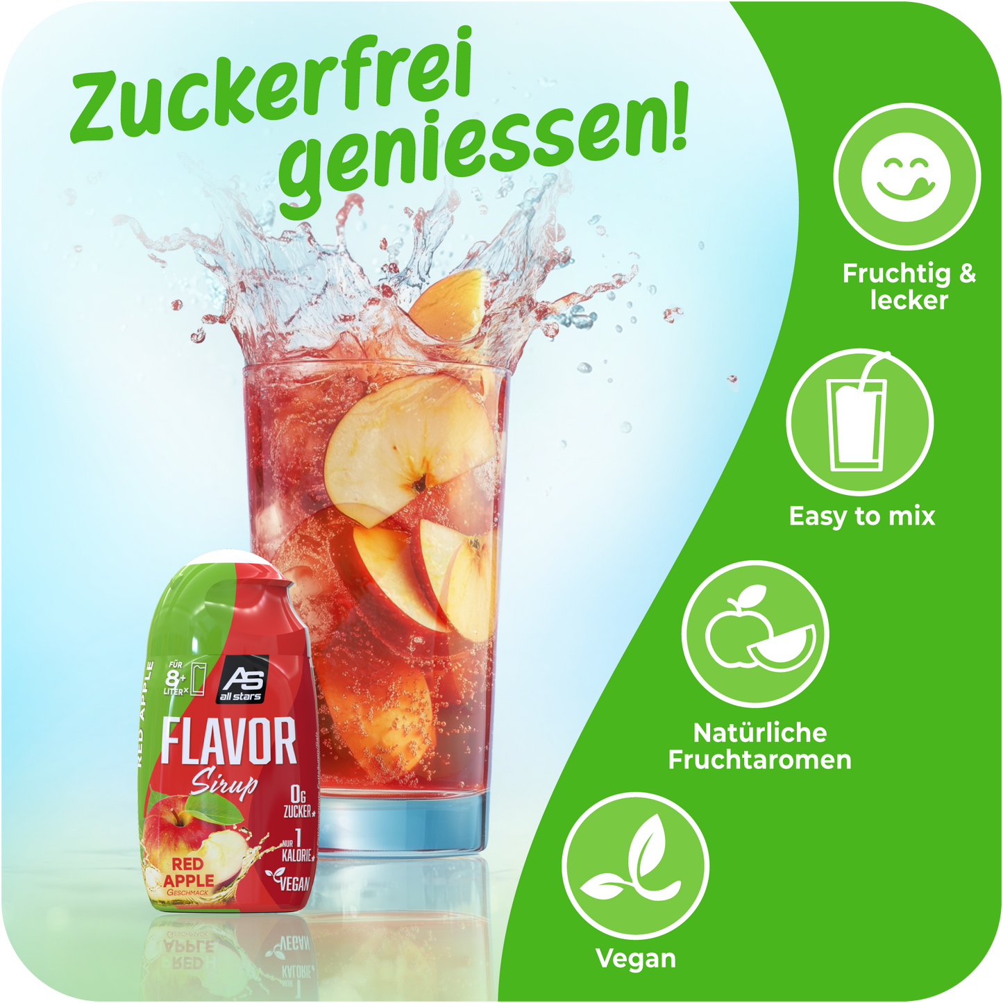 ALL STARS Flavor Sirup enthält weder Fett, Kohlenhydrate noch Zucker, ist hochkonzentriert und lässt sich mit stillem oder kohlensäurehaltigem Wasser ganz einfach zu einem leckeren und erfrischenden Getränk mischen.