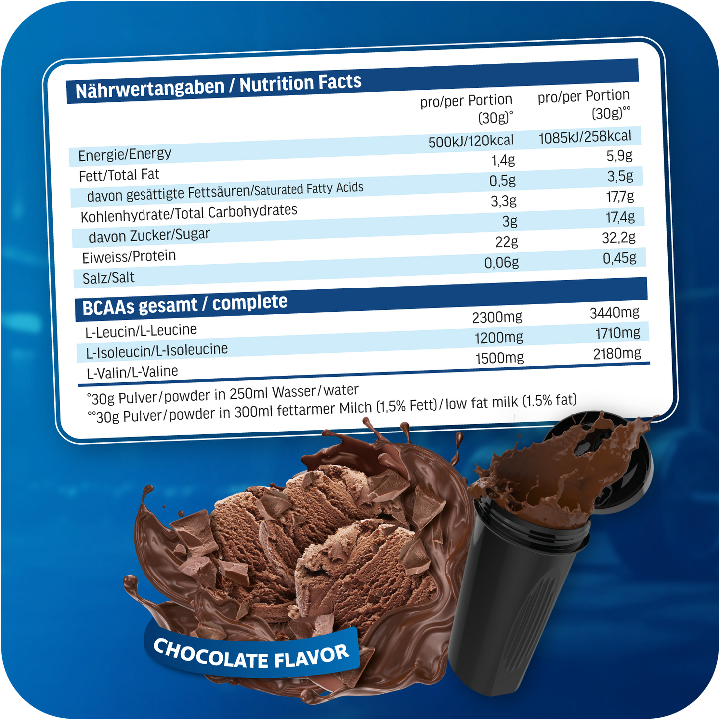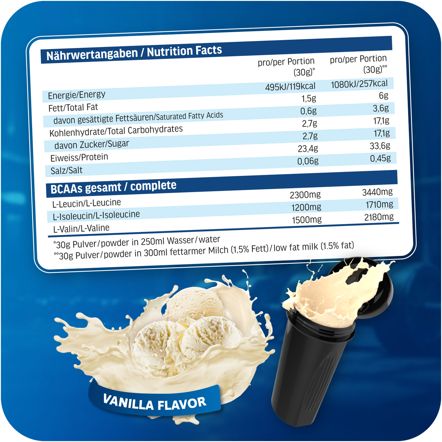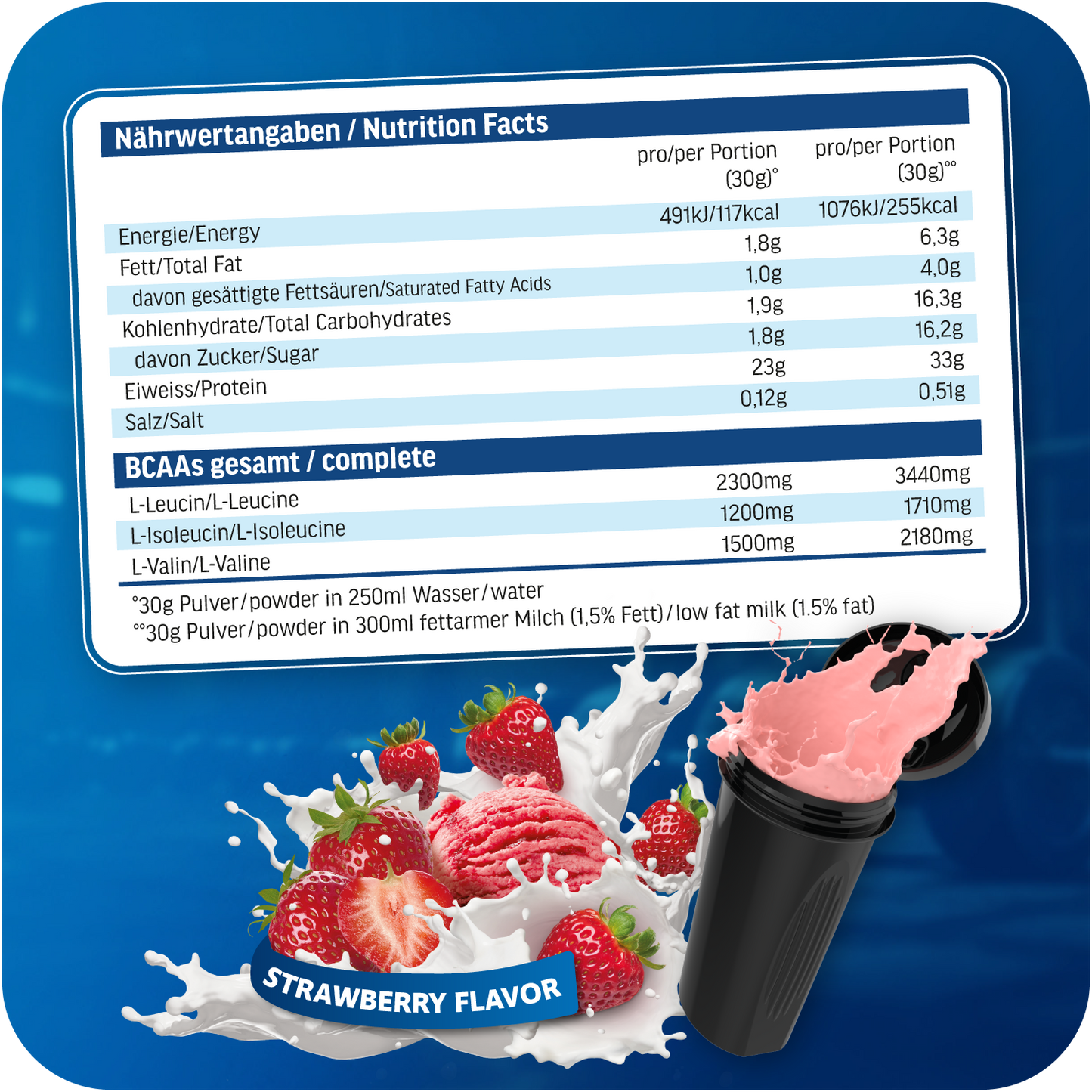- Whey-Konzentrat & Isolat mit 5 g BCAAs