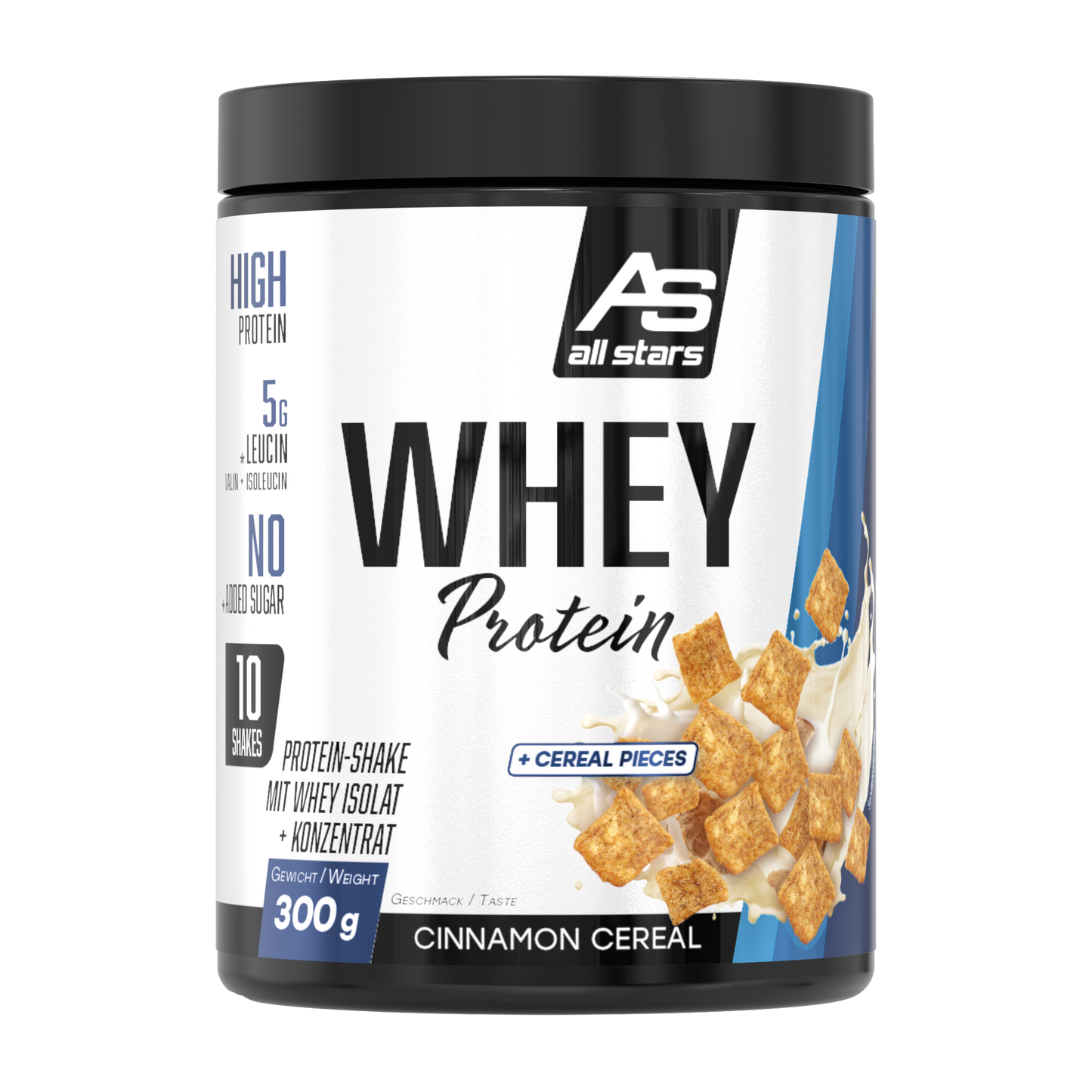 Whey Protein lässt sich flexibel einsetzen, egal ob rund ums Training oder im Alltag. Protein trägt zum Erhalt und Aufbau von Muskelmasse bei und ist ein wichtiger Bestandteil einer ausgewogenen Ernährung. Das ALL STARS Whey Protein überzeugt dabei durch seine einfache Zubereitung und seinen angenehm cremigen Geschmack.