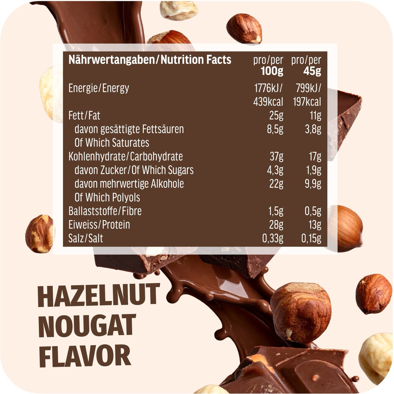 Das Ergebnis ist ein einzigartiger Mix aus crunchy und smooth, der klassische Schokoriegelmomente mit moderner Sporternährung verbindet.