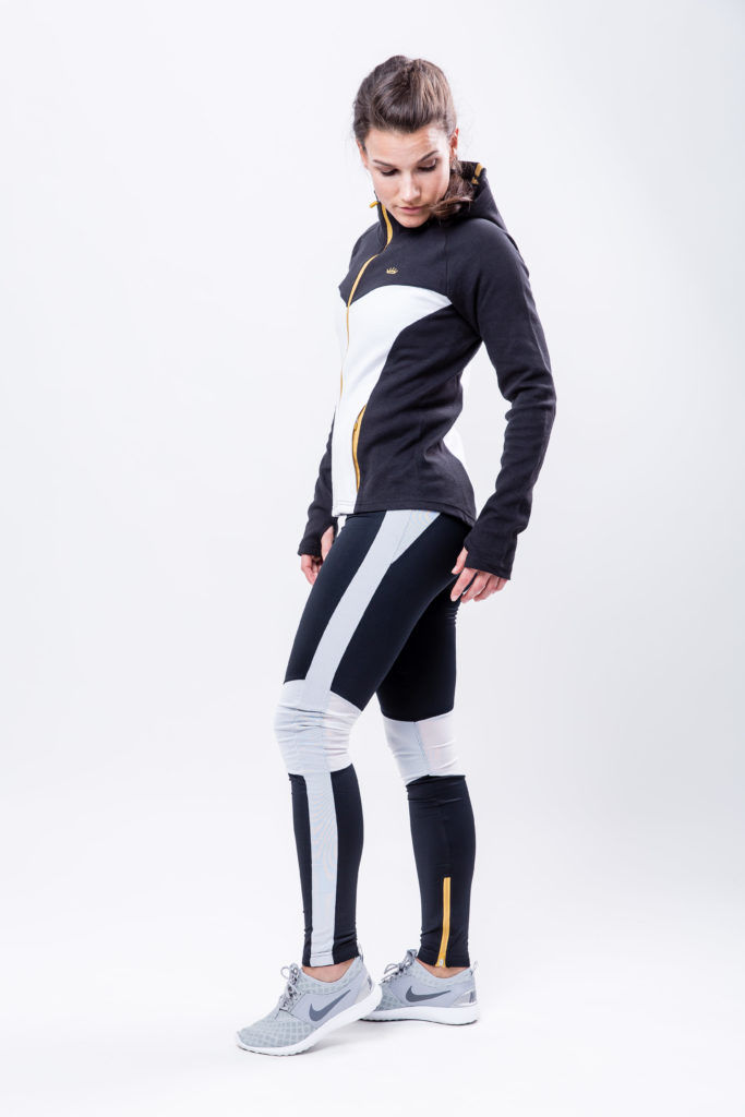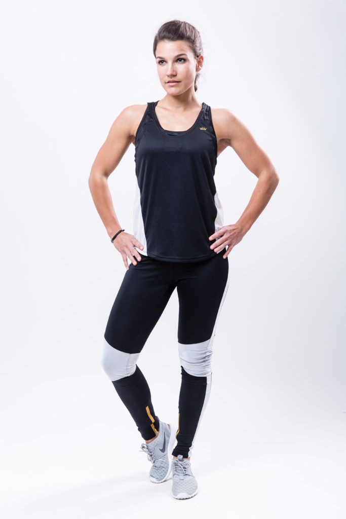 Ob im Fitnessstudio oder draußen, die Leggings aus unserer "Edge-Line" bringt Funktion und einen coolen Look in Deinen sportlichen Alltag. Der extra breite & elastische Goldbund garantiert Dir maximale Flexibilität beim Training. Bei der Leggings „Absolute Midnight“ wurden stylische Mesh-Einsätze an den Kniekehlen für beste Belüftungseigenschaften eingearbeitet. Der dazugehörige Sports-Bra betont Deine Weiblichkeit und lässt sich zudem super lässig mit dem Shirt stylen.